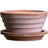 Planet krukke fra Bergs Potter med et håndlaget design i høykvalitets terrakotta med et dekorativt, uregelmessig ringmønster og en fin, uglasert overflate med en blekrosa finish. Den har et inkludert fat. Miks og match forskjellige størrelser, farger og materialer for å skape din personlige stil.