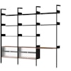 - Denne modellen, Rombe konfigurasjon J (IF3/IF5/IF6), er et reolsystem i full høyde med tre seksjoner, inkludert hyller, skap og et skrivebord.