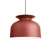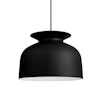 Ronde pendel fra Gubi, designet av Oliver Schick. Denne klokkeformede og moderne pendelen har en ultramatt lakk, som gir den et utseende som minner om keramikk. En unik detalj er at toppen åpner seg som en krage. Dette fører til at Ronde ikke kun har nedadrettet lys. Lyset stråler ut av toppens åpning og gir et mykt, vakkert og behagelig skinn også på ledningen og opp mot taket. Pendelen har en svart tekstilledning som er 5 meter lang, takkopp inngår. Lampen selges uten lyskilde.