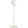 Runa gulvlampe kombinerer en rund lampeskjerm i opalglass med en slank metallkropp i messing eller krom. Den sprer et mykt og stemningsfullt lys, mens den grafiske foten gir et moderne og balansert uttrykk. En tidløs gulvlampe som smelter inn i rommet, men som likevel tilfører karakter.