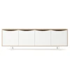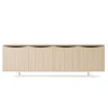 Sand mediabenk fra Decotique med et glatt design i eik med fire luker for ryddig oppbevaring.