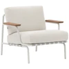 Settle er en loungestol fra Muuto med en elegant estetikk og myke, hurtigtørkende puter for optimal komfort utendørs.