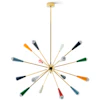 Sputnik er en ikonisk pendellampe fra Stilnovo som kombinerer eleganse med dramatikk. Med sine 16 messingarmer strekker den seg ut som et stilisert fyrverkeri - et blikkfang som tilfører både lys og karakter til rommet. De lakkerte metallendene er tilgjengelige i svart, elfenben eller en fargerik blanding, slik at lampen enkelt kan tilpasses ulike interiørstiler.