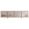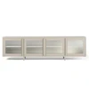 Vi presenterer Store mediabenk fra Department - den ultimate blandingen av stil og funksjonalitet. Denne mediebenken har en elegant, minimalistisk design med en slitesterk, pulverlakkert stålramme og fire dører i fantastisk riflet glass, noe som tilfører et snev av moderne eleganse til ethvert oppholdsrom.