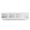 Den store oppbevaringsplassen bak de riflede glassdørene holder medieutstyret ditt organisert og støvfritt, samtidig som det er lett tilgjengelig.