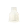 Strand pendel fra Muuto i vakker, iøynefallende kokong. Cocoon betyr at materialet sprayes manuelt og med presisjon i et tynt lag rundt en stålramme, på lignende måte som silkeormen vever sin kokong.
