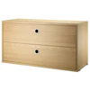 String kommode med to praktiske skuffer med runde, utfreste håndtak. En del av et hyllesystem med stabil konstruksjon, uendelige muligheter med et klassisk, ikonisk design som aldri går ut av stil og et klassisk, ikonisk design som aldri går ut av stil. Førsteklasses kvalitet med høykvalitets materialer for å holde i generasjoner.