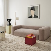Lek med kontraster. En fluffy rye skaper dynamikk i et rom med harde materialer og kantete linjer. Hvorfor ikke prøve en rund variant for å myke opp rommet ytterligere?