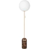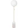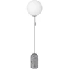Torrano gulvlampe fra Globen Lighting med et moderne design med en vakker lampefot i sten, en rund, hvit lampeskjerm i glass og detaljer i metall.