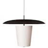 Designet kombinerer en bred metallinse som sprer lyset mykt og jevnt med et stoffelement som gir varme og tekstur. En aksent i bronse kompletterer lampen og skaper en subtil kontrast. TOTON er perfekt for åpne rom, spisestuer eller salonger, og er mer enn bare en lampe - den er en statement-lampe som definerer stemningen i omgivelsene.
