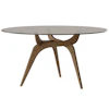 Vi presenterer spisebordet Triio fra Brdr. Krüger, et mesterverk av den danske arkitekten Hans Bølling. Det grenlignende understellet i eik og den svevende bordplaten i glass skaper et rolig midtpunkt i enhver spisestue eller ethvert kjøkken. Bordet er perfekt for stilbevisste personer, og det harmonerer vintage-eleganse med en moderne vri og tilbyr en vakker blanding av kunstferdig design og funksjon.
