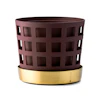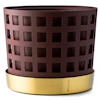 Trio Square krukke fra Klong med et stilrent, ensfarget design i rustfritt stål med et firkantet mønster og en herlig, mørkerød farge for å legge det lille ekstra til omgivelsene. Den har en rund form med en indre krukke og en ytre krukke og et dekorativt fat i messing med en lakkert, vanntett finish. Kombiner ulike modeller og farger for å skape din egen fine blanding. Tilgjengelig i ulike størrelser. Kun til innendørs bruk.