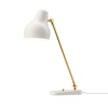 VL38 bordlampe fra Louis Poulsen, designet av Vilhelm Lauritzen. VL38 lampen tilhører en familie med belysning til vegg. gulv og bord – altså til alle plasser i hjemmet som har behov for belysning. Designen er et hvitlakkert, organisk formet og skråskåret lempehode med armer laget i messing. Plasser bordlampen på skrivbordet i kontoret og få et behaglig lys eller som en nattlampe på nattbordet. Lyskilden er LED 2700K.