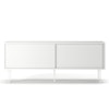 Vogue mediabenk fra Decotique med et moderne design og et luksuriøst uttrykk til alle hjem og stiler. Den har to skyvedører i samme farge og fem smale ben for et eksklusivt inntrykk. To seksjoner med en flyttbar hylle i hver seksjon for å kunne anpasse etter smak og behov og to hull bakpå for ledninger og kabler. Velg mellom ulike farger og materialer.