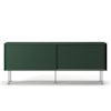 - Materiale beskrivelseRamme i lakkert MDF, valnøttfiner eller eikfiner. Dører med eller uten messingfarget aluminium. Messingbase, alternativt hvit eller sort metall.