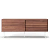 - Materiale beskrivelseRamme i lakkert MDF, valnøttfiner eller eikfiner. Dører med eller uten messingfarget aluminium. Messingbase, alternativt hvit eller sort metall.