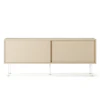 Vogue mediabenk fra Decotique med et moderne design og et luksuriøst uttrykk til alle hjem og stiler. Den har to skyvedører i samme farge og fem smale ben for et eksklusivt inntrykk. To seksjoner med en flyttbar hylle i hver seksjon for å kunne anpasse etter smak og behov og to hull bakpå for ledninger og kabler. Velg mellom ulike farger og materialer.