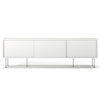 Vogue mediabenk fra Decotique med et moderne design og et luksuriøst uttrykk til alle hjem og stiler. Den har tre skyvedører i samme farge og seks smale ben for et eksklusivt inntrykk. Tre seksjoner med en flyttbar hylle i hver seksjon for å kunne anpasse etter smak og behov og tre hull bakpå for ledninger og kabler. Velg mellom ulike farger og materialer.