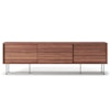 Vogue mediabenk fra Decotique med et moderne design og et luksuriøst uttrykk til alle hjem og stiler. Den har tre skyvedører i samme farge og seks smale ben for et eksklusivt inntrykk. Tre seksjoner med en flyttbar hylle i hver seksjon for å kunne anpasse etter smak og behov og tre hull bakpå for ledninger og kabler. Velg mellom ulike farger og materialer.
