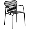Week-End lenestol fra Petite Friture med et grafisk uttrykk i rustfritt aluminium. Skrueløs konstruksjon med strømmende former, geometriske elementer og lineære ribber i to retninger. Komfortabelt sete med armlener og stabelbar funksjon. Robust materiale med holdbar epoksymaling og UV-bestandig belegg perfekt til utendørs bruk. Matt finish i forskjellige farger å velge mellom.