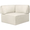 De fyldige putene er mykt brettet over ryggstøttens rette linjer, pent festet med skjulte magneter. Dette gjør at møtet mellom fremside og bakside mykner, og skaper et avslappet, sofistikert og behagelig utseende der overdådig lekenhet møter moderat enkelhet.