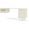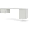 Workshop skrivebord fra Montana med et ryddig, funksjonelt design perfekt til det moderne hjemmekontoret. Det er vegghengt og laget av lakkert MDF og har tre avtagbare brett på en side og et romslig skap på den andre siden. Et praktisk design som gir mer plass til beina.